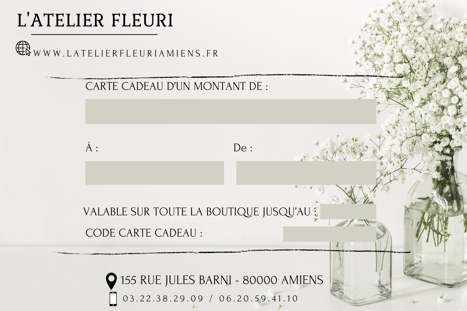 Offrez un bon cadeau de la valeur de votre choix valable pendant un an sur toute la boutique et les ateliers !